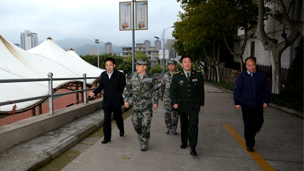 座談會(huì)結(jié)束后,谷星林一行在彭虎軍等人員的陪同下,實(shí)地考察了學(xué)校校園環(huán)境和國(guó)防戶(hù)外訓(xùn)練場(chǎng)地。