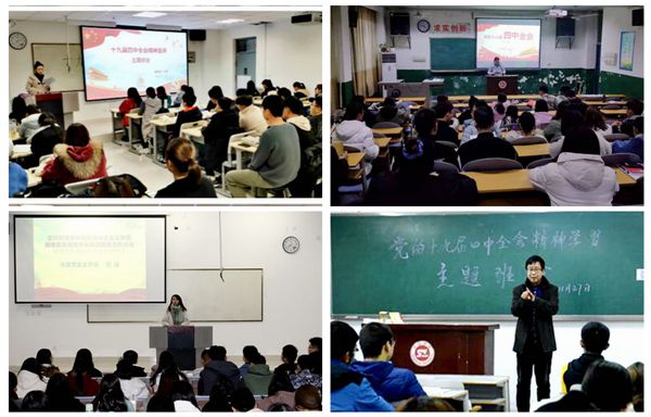 為確保黨的第十九屆四中全會精神全覆蓋,各學院針對外出實習學生,借助微信、qq工作群等網(wǎng)絡平臺,發(fā)送學習內容,開展了多種形式的在線學習。