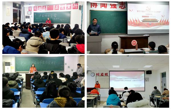 按照學校黨委的部署和學工部的統(tǒng)一安排,11月27日晚,我校全體輔導員深入班級,通過舉辦主題班會等形式,向學生宣講黨的十九屆四中全會精神,對學生開展制度自信教育。