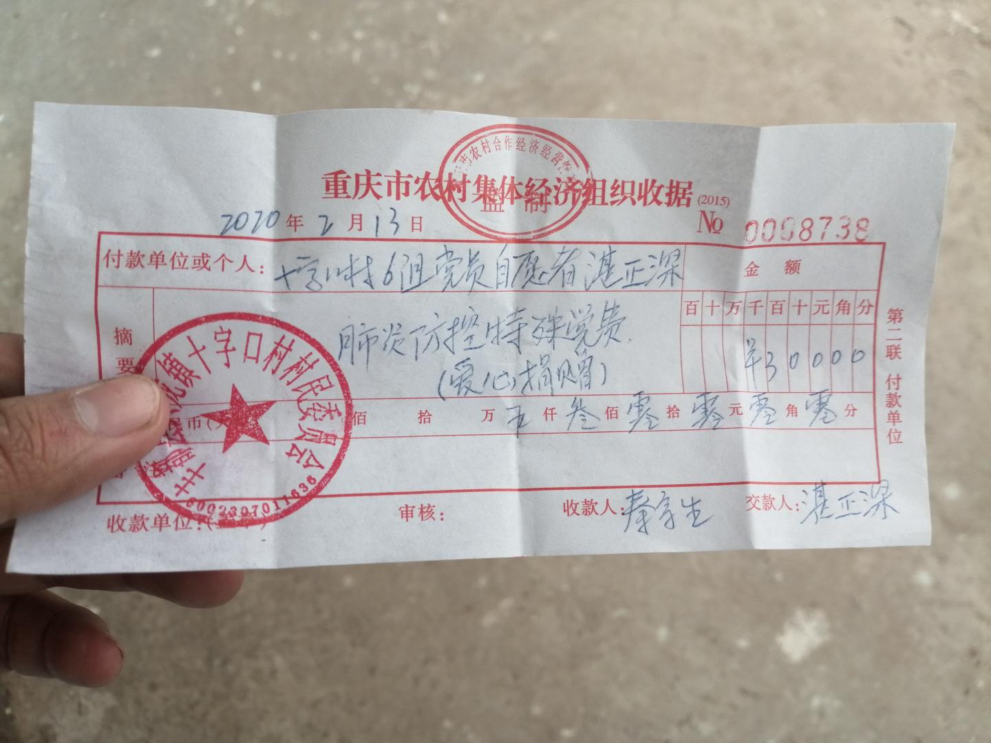疫情暴發(fā)時,湛正深同學正在重慶市豐都縣興龍鎮(zhèn)十字口村的老家,對疫情的關注格外用心的他,在得知村黨委需要志愿者后,第一時間到所在十字口村村黨委報到請戰(zhàn),主動提交請戰(zhàn)書。他在請戰(zhàn)書中寫到:作為一名學生黨員,我時刻牢記著隨時準備為黨和人民犧牲一切的入黨誓詞,在疫情防控關鍵的時刻,希望能夠參與到疫情防疫第一線,為防范疫情出一份力。同時,湛正深還將自己兼職賺取的三百元現(xiàn)金作為特殊黨費上交組織以做疫情防控之用。經過當?shù)攸h委的批準,湛正深同學加入“抗疫”工作小組,在做好自身安全防護的前提下,迅速投身防控一線。