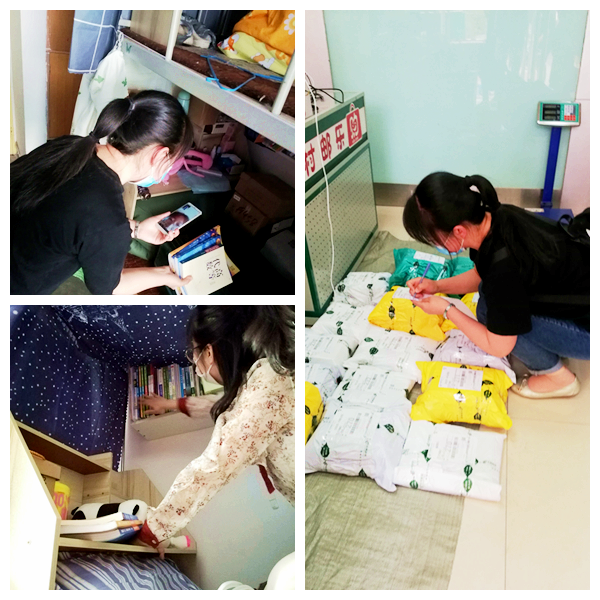“老師,單位通知我盡快簽約,可我的三方還在宿舍,能不能幫我取一下?”“導(dǎo)員,上學(xué)期高數(shù)(1)好不容易沒有掛科,現(xiàn)在《高數(shù)(2)》快結(jié)課了,要是再沒有書,這學(xué)期肯定掛了,能不能幫幫我!”面對學(xué)生的要求,數(shù)計學(xué)院學(xué)工人員主動變身校園“快遞員”,“云”接單后在學(xué)生宿舍進行直播“帶貨”,小到一張紙,大到筆記本電腦都在他們的下單范圍。“你看看是不是這本書?英語書要不要?”“你的柜子鑰匙在哪里?是在床墊靠門的一邊下面壓著嗎?”“你要拿哪幾件衣服?是這件嗎?還有那件,需要嗎?”“宿舍陽臺的幾盆植物是誰的呀,已經(jīng)干癟了,我給幫忙澆點水?!闭业綎|西后,輔導(dǎo)員們會逐一貼上標簽仔細核對,以免物品混淆,到快遞寄送點后也會一直監(jiān)督物品打包、物流信息填寫,還會對個別建檔立卡學(xué)生提供包郵服務(wù)。