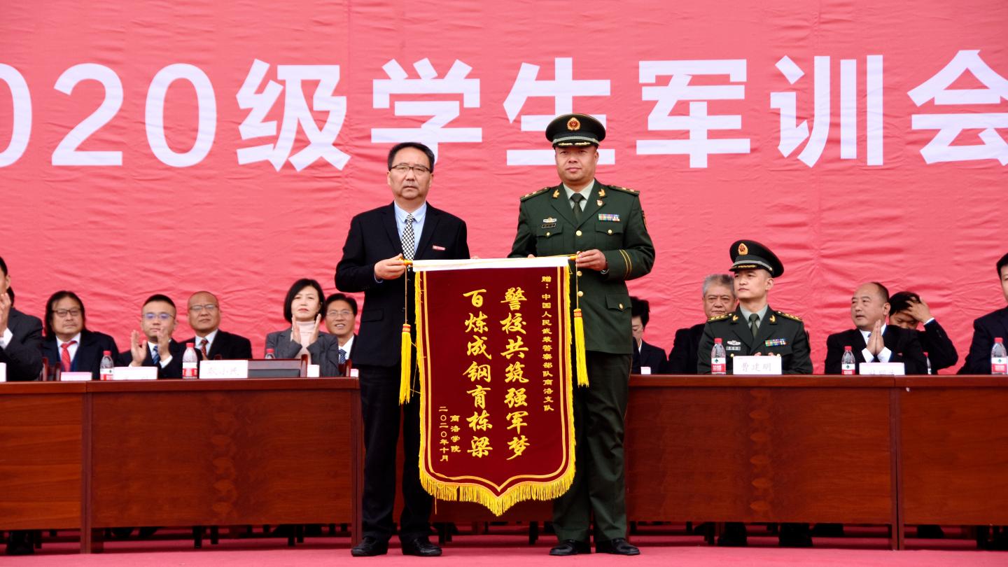 大會(huì)在莊嚴(yán)的升旗儀式中拉開帷幕。校黨委書記龍治剛對(duì)全體承訓(xùn)教官盡心竭力、風(fēng)雨無阻的付出表示由衷感謝,代表學(xué)校向承訓(xùn)部隊(duì)贈(zèng)送了寫有“警校共筑強(qiáng)軍夢(mèng),百煉成鋼育棟梁”的錦旗。