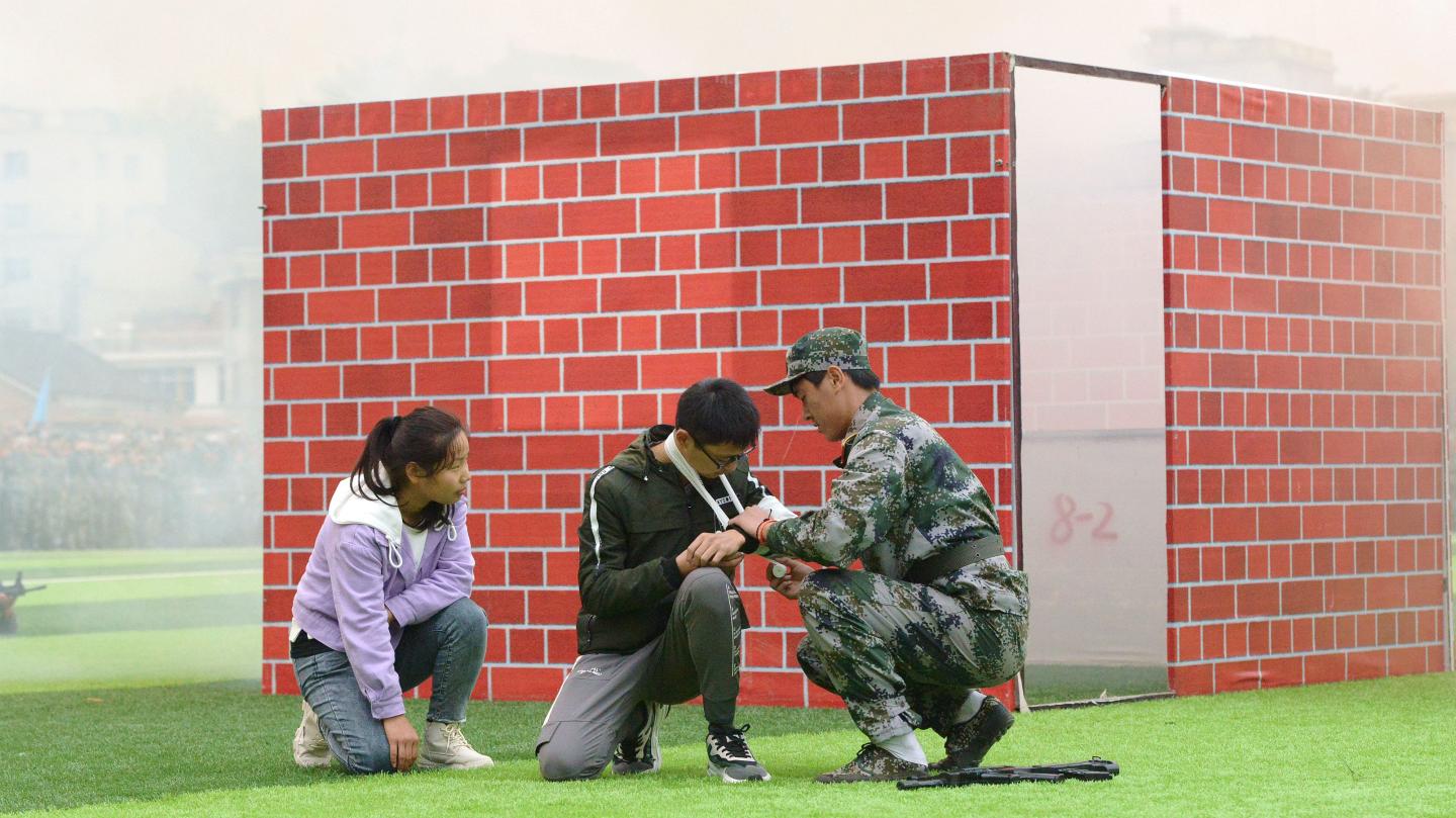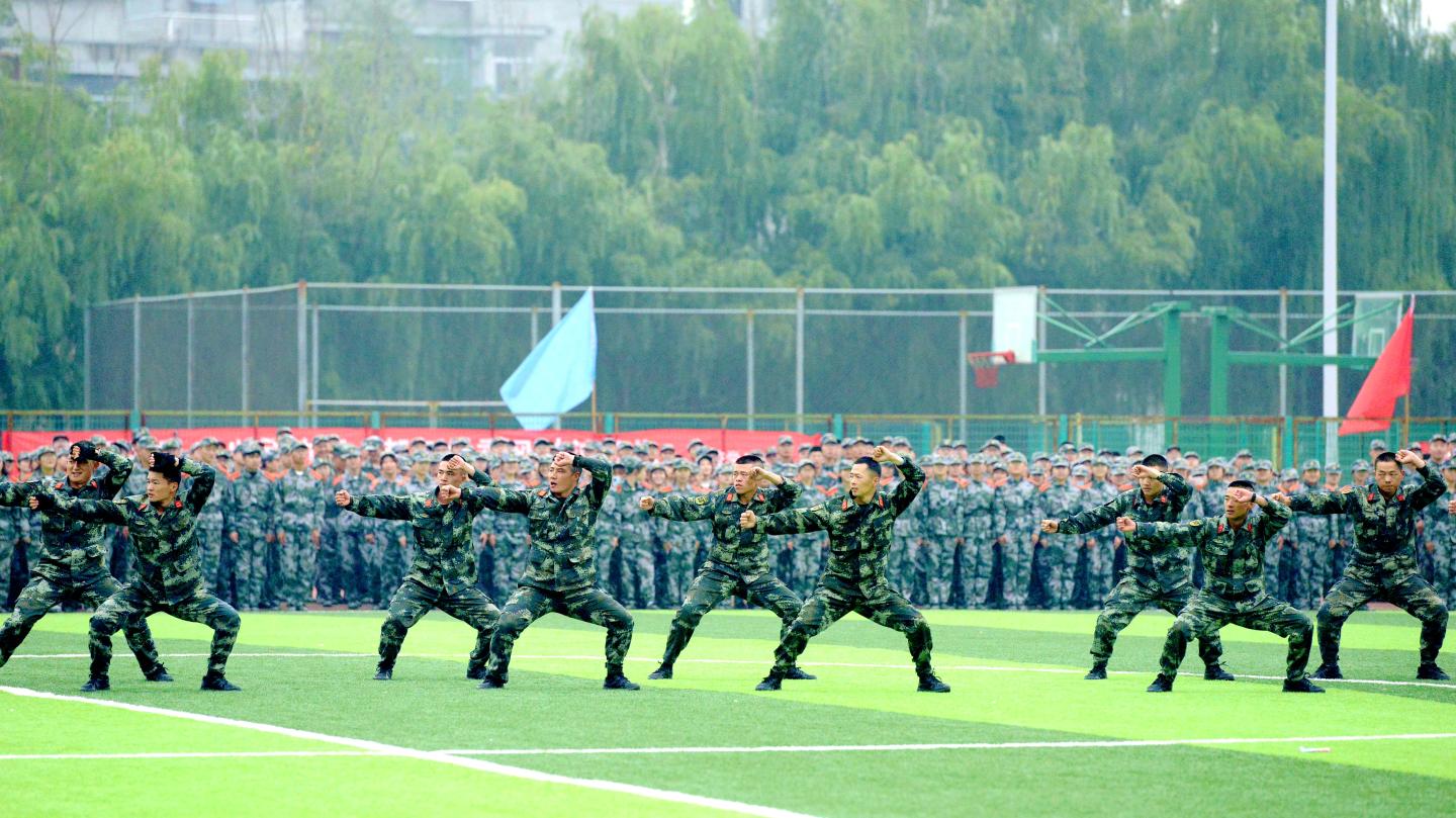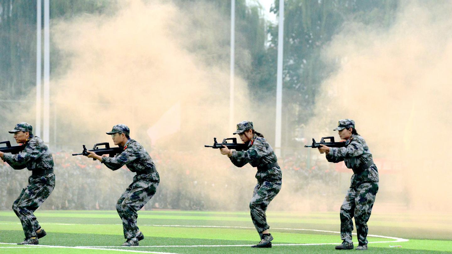 分列式結(jié)束后,軍訓(xùn)教官和學(xué)生進(jìn)行了匕首操、花樣隊(duì)列、五步拳、擒敵術(shù)、反恐演練等匯報(bào)表演。女兵們表演的匕首操干凈利落、整齊劃一,將“巾幗不讓須眉”之勢(shì)展現(xiàn)的淋漓盡致;花樣隊(duì)列表演中同學(xué)們擺出“商院2020”“不忘初心、牢記使命”等字樣,展現(xiàn)了商院學(xué)子勇?lián)鷷r(shí)代使命的志向決心;五步拳表演套路連貫、氣勢(shì)如虹,拳腳虎虎生威,擒敵術(shù)表演配合默契、果敢勇猛,盡顯軍人本色;反恐演練與戰(zhàn)地救護(hù),模擬展示了多種反恐戰(zhàn)術(shù)隊(duì)形、戰(zhàn)術(shù)手語、戰(zhàn)術(shù)基本持槍動(dòng)作以及相對(duì)應(yīng)的實(shí)戰(zhàn)技能,將現(xiàn)場(chǎng)氣氛推向高潮,引得師生陣陣掌聲。