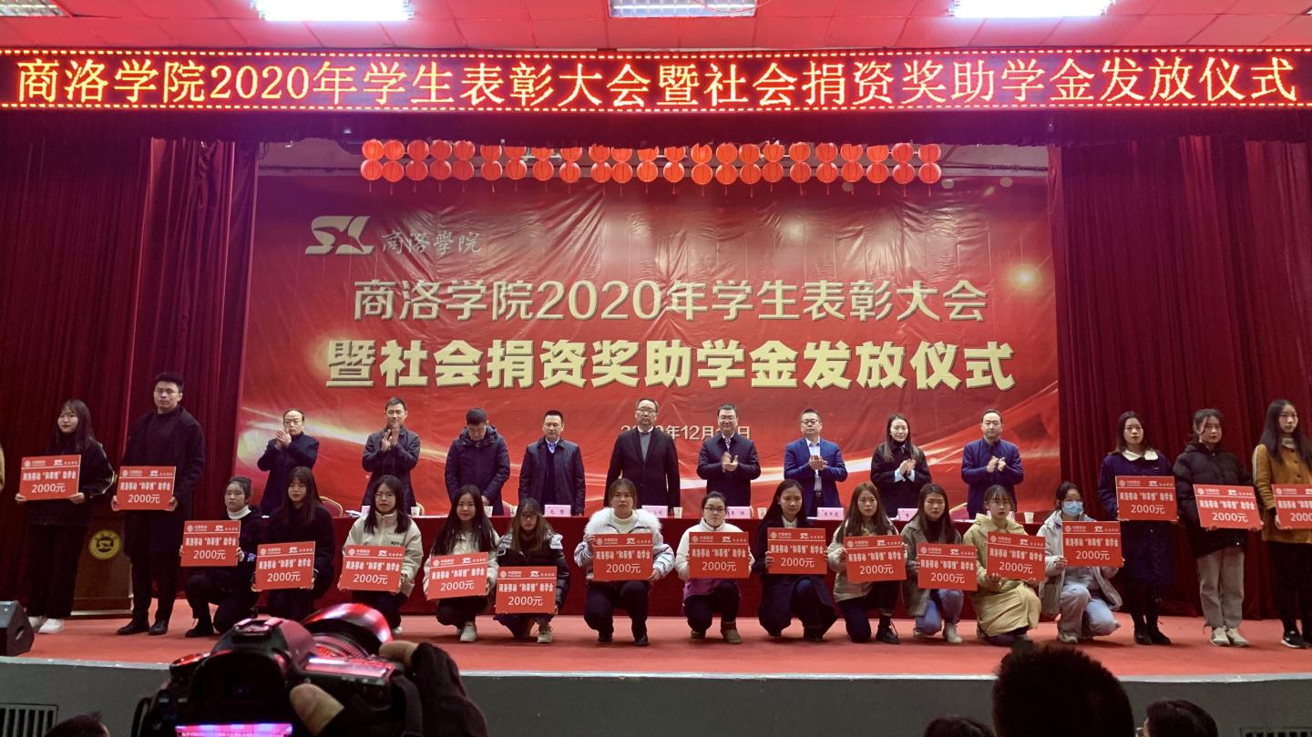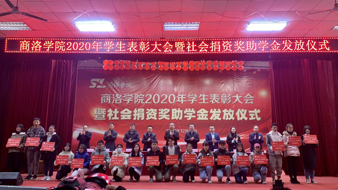 12月16日,我校2020年學(xué)生表彰大會暨社會捐資獎助學(xué)金發(fā)放儀式在大學(xué)生活動中心隆重舉行。校黨委書記龍治剛、黨委副書記劉勇,國網(wǎng)商洛供電公司總經(jīng)理李強,中國聯(lián)通商洛分公司副總經(jīng)理毛繁,中國電信商洛分公司副總經(jīng)理王軍建,中國移動商洛分公司黨委委員、副總經(jīng)理許鵬,貴州茅臺陜西省區(qū)域負責(zé)人李方,校黨委委員、黨委辦公室·院長辦公室主任、校友總會辦公室負責(zé)人張向東等出席大會。大會由學(xué)生處處長石啟英主持。