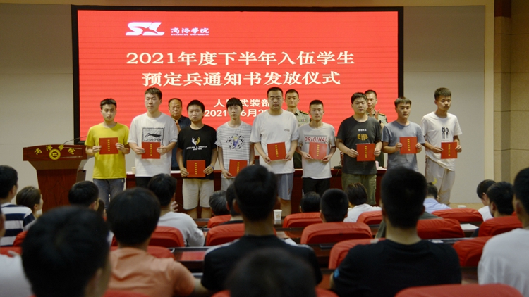 6月28日,我校舉辦了2021年度下半年入伍學生預定兵通知書發(fā)放儀式,商州區(qū)武裝部部長曹建明上校、副部長陳強中校出席會議。我校學生處處長石啟英、各二級學院學工辦主任及51名預定新兵參加了會議。會議由石啟英主持。