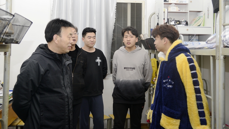 檢查中,彭虎軍詳細(xì)查看了公寓出入學(xué)生登記冊(cè)、輔導(dǎo)員進(jìn)樓走訪工作臺(tái)賬及輔導(dǎo)員值班安排表,并就公寓管理、宿舍文明、宿舍衛(wèi)生、學(xué)生教育管理等工作與宿管員及值班輔導(dǎo)員進(jìn)行了深入交流。在學(xué)生宿舍,彭虎軍仔細(xì)查看了宿舍環(huán)境、設(shè)施安全及衛(wèi)生情況,與學(xué)生們親切交談,詢問(wèn)他們學(xué)習(xí)生活中的困難和需求、就業(yè)意向及宿舍供暖情況等,叮囑學(xué)生要提高安全意識(shí),注意冬季用電安全,遵守公寓安全相關(guān)規(guī)定,營(yíng)造良好的學(xué)習(xí)和生活環(huán)境。彭虎軍還要求相關(guān)部門(mén)及二級(jí)學(xué)院要進(jìn)一步加強(qiáng)安全隱患排查整治工作,形成常態(tài)化工作機(jī)制,解決好突出問(wèn)題,充分保障學(xué)校安全穩(wěn)定大局,確保正常的教育教學(xué)秩序。
