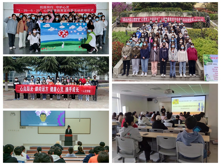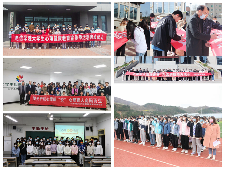 各二級(jí)學(xué)院結(jié)合院部實(shí)際,把握主題,精心策劃并陸續(xù)舉行了各自院部的心理健康教育宣傳季啟動(dòng)儀式。其中,馬克思主義學(xué)院組織了40名學(xué)生代表在操場(chǎng)開(kāi)展了以“抗疫同行守護(hù)心靈”為主題的團(tuán)體輔導(dǎo)活動(dòng),引導(dǎo)學(xué)生在體驗(yàn)活動(dòng)中發(fā)現(xiàn)自己的閃光點(diǎn)、以更加積極健康的心態(tài)迎接未來(lái)的挑戰(zhàn);人文學(xué)院開(kāi)展“3·25大學(xué)生心理健康日”交流會(huì),現(xiàn)場(chǎng)準(zhǔn)備了粉色問(wèn)題箱、綠色回答箱、藍(lán)色宣泄箱、黃色祝福箱,讓同學(xué)們對(duì)自己和身邊人坦誠(chéng),增進(jìn)自我了解,釋放心情,驅(qū)散煩惱;數(shù)計(jì)學(xué)院組織學(xué)生觀看心理育人微視頻,并圍繞“如何應(yīng)對(duì)壓力”的話題讓學(xué)生展開(kāi)討論,旨在讓學(xué)生尋找到適合自己應(yīng)對(duì)壓力的方式,及時(shí)為自己解壓,保持良好的心理狀態(tài)。建工學(xué)院組織學(xué)生觀看了“面對(duì)疫情,我們?nèi)绾芜M(jìn)行心理調(diào)適?”的心理健康講座視頻,讓學(xué)生覺(jué)察自己因疫情帶來(lái)的不良情緒及其調(diào)適方法;經(jīng)管學(xué)院開(kāi)展了“愛(ài)心理助力團(tuán)”心理委員專題培訓(xùn),了解學(xué)生在校園加強(qiáng)疫情管控期間的心理狀況,引導(dǎo)學(xué)生多關(guān)注心理健康方面知識(shí),保持積極健康心態(tài);藝術(shù)學(xué)院召集全院學(xué)生干部,并由黨總支書(shū)記黃新春為學(xué)生干部們講述心理危機(jī)的識(shí)別與干預(yù)的基本要領(lǐng),進(jìn)一步夯實(shí)了學(xué)院危機(jī)干預(yù)四級(jí)網(wǎng)絡(luò)機(jī)制;電信學(xué)院、化材學(xué)院、生物學(xué)院和健康學(xué)院等開(kāi)展了以“陽(yáng)光護(hù)航”為主題的啟動(dòng)大會(huì),會(huì)上安排部署心理季活動(dòng),介紹了心理健康教育的意義及重要性,組織學(xué)生進(jìn)行“325善愛(ài)我”的宣誓并在橫幅上簽字,旨在號(hào)召關(guān)注心理健康,不負(fù)青春韶華。