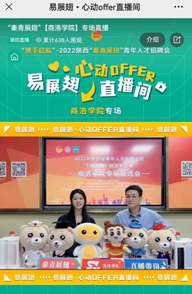 為充分搶抓畢業(yè)生求職關(guān)鍵期,鞏固“訪企拓崗”促就業(yè)專項(xiàng)行動(dòng)成果,5月10日下午,共青團(tuán)陜西省委、陜西省青年就業(yè)創(chuàng)業(yè)服務(wù)指導(dǎo)中心與我校聯(lián)合舉辦2022年陜西省青年人才招聘會(huì)暨“千校萬(wàn)崗·就業(yè)有位來(lái)”—商洛學(xué)院專場(chǎng)雙選會(huì)。學(xué)生處負(fù)責(zé)人及有關(guān)工作人員參加了直播帶崗位現(xiàn)場(chǎng)活動(dòng)。