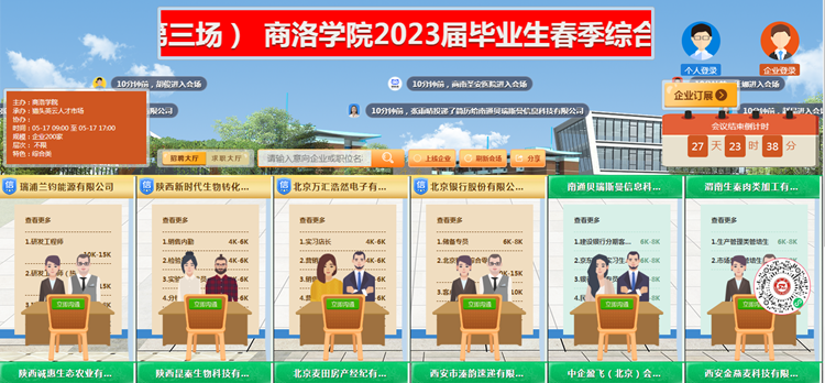 為切實做好我校2023屆畢業(yè)生就業(yè)工作,促進畢業(yè)生更加充分、更高質(zhì)量就業(yè),4月19日,由省教育廳主辦,商洛市人社局、商洛市人才中心協(xié)辦,我校依托貓頭英云人才市場成功舉辦了2023屆畢業(yè)生春季綜合類網(wǎng)絡視頻招聘會(第二場)。