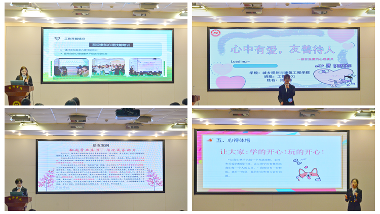 為進(jìn)一步做好心理健康教育工作,充分發(fā)揮班級心理委員在朋輩支持體系中的作用,不斷激發(fā)心理委員的工作熱情,12月12日,我校舉辦2024年“校園十佳心理委員”評選活動。學(xué)生處負(fù)責(zé)人、相關(guān)指導(dǎo)教師、各學(xué)院班級心理委員代表等120余人現(xiàn)場觀摩。