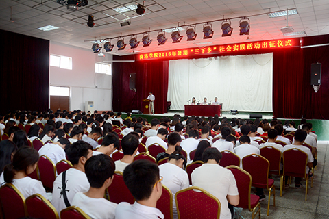 為提高我校大學(xué)生社會實(shí)踐能力,7月14日下午,我校舉行2016年大學(xué)生暑期“三下鄉(xiāng)”社會實(shí)踐活動啟動儀式。校黨委副書記彭虎軍出席啟動儀式并向社會實(shí)踐團(tuán)隊(duì)授旗。校團(tuán)委負(fù)責(zé)人、各二級學(xué)院團(tuán)總支書記及大學(xué)生暑期社會實(shí)踐活動指導(dǎo)教師、學(xué)生代表等參加活動。啟動儀式由校團(tuán)委許薇主持。