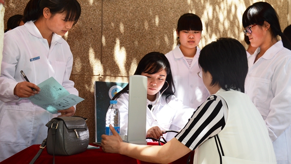 活動(dòng)分為義診、有獎(jiǎng)競猜、護(hù)理禮儀展示三個(gè)環(huán)節(jié)?;顒?dòng)現(xiàn)場,生物學(xué)院首屆護(hù)理專業(yè)學(xué)生身穿潔白護(hù)士服為參與者測量身高、體重、血壓和體溫,并根據(jù)測量結(jié)果給出科學(xué)的護(hù)理建議;同學(xué)們競相參與護(hù)理常識(shí)有獎(jiǎng)競猜,既活躍了校園氣氛,又普及了護(hù)理及養(yǎng)生方面的知識(shí);護(hù)理專業(yè)師生為同學(xué)們介紹護(hù)士節(jié)的由來,展示護(hù)理禮儀,吸引了眾多師生駐足參與。