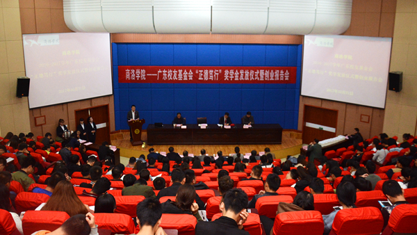 10月31日,我校舉行廣東校友基金會首屆“正德篤行”獎學金發(fā)放儀式暨創(chuàng)業(yè)報告會,校黨委副書記彭虎軍,我校95屆校友、廣東校友會會長、廣東綠谷凈化設備有限公司董事長李玉望出席大會,學生處、校友總會辦公室、各學院黨總支負責人,學工辦主任、全體輔導員、學生代表共400余人參加會議,大會由學生處處長石啟英主持。