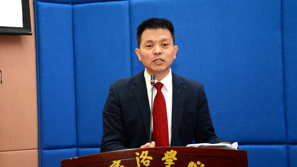 彭虎軍代表學校和全體師生對李玉望時刻關(guān)注母校發(fā)展、關(guān)心學弟學妹成長成才的善舉表示感謝。他向師生們闡釋了“正德篤行”獎學金的由來、設立和評定過程,并對同學們提出了四點希望:一是不忘初心,養(yǎng)成良好的學習和生活習慣,練就過硬的本領(lǐng),做一名對國家、對社會有用的人才;二是勤學善思,認真學好專業(yè)知識,不斷提升德行修養(yǎng),養(yǎng)成善于學習、善于思考、勇于探索的良好習慣與魄力;三是善于創(chuàng)新,樹立創(chuàng)新思維,敢于創(chuàng)新、勇于創(chuàng)新、大膽創(chuàng)新,播種智慧,潛心鉆研;四是接續(xù)愛心,自發(fā)樹立“自助者助人,助人者自助”的大愛意識,將“正德篤行”所蘊含的愛心責任的大旗扛起來,將自助助人的美好夢想傳遞下去。