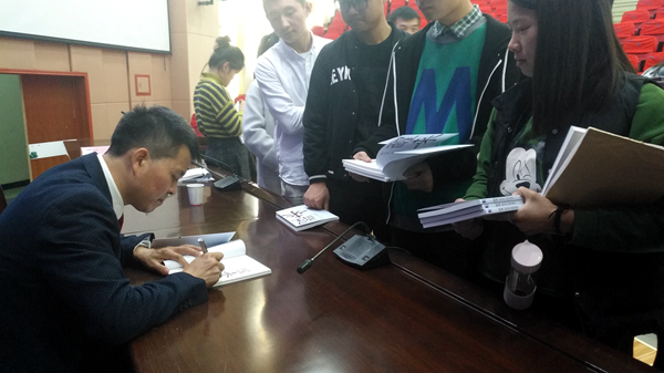 發(fā)放儀式結(jié)束后,李玉望為師生們作了題為《創(chuàng)新創(chuàng)業(yè)的幾點體會》的專題報告,并為師生們簽名贈閱了書籍《醒來:知行合一傳習讀本》。報告中,李玉望結(jié)合自己求學、創(chuàng)業(yè)、守業(yè)的工作歷程、生活歷程、心路歷程,勉勵同學們立長志而不常立志;不忘初心、發(fā)揮優(yōu)勢;量寬得人、身先率人、律己服人;在逆境中堅忍不拔,茁壯成長。整場報告突出大學生創(chuàng)新創(chuàng)業(yè)的新思路、新理念、新目標,對廣大學生產(chǎn)生了深刻的啟發(fā)與觸動。同學們紛紛表示受益匪淺。