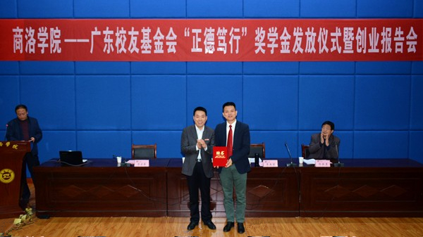 李玉望介紹了“正德篤行”獎學金設立的相關(guān)情況,并表示自己作為廣東校友基金會的代表、作為獎學金設立方,為獲獎學生頒發(fā)獎金證書,就是要將“商洛學院精神”傳承下去,讓每一名商洛學院學子都有獲得感、存在感、榮譽感,希望學弟學妹們樹立遠大目標,努力回饋社會,樹立擔當奉獻意識,為今后的成才成功奠定良好基礎(chǔ)。