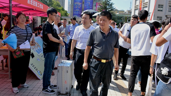 2018年我校面向28個(gè)?。ㄊ?、自治區(qū))錄取新生3593人。為了確保新生報(bào)到工作順利開(kāi)展,9月4號(hào)下午,校長(zhǎng)范新會(huì)、副校長(zhǎng)魏書(shū)堂、黨委副書(shū)記彭虎軍、副校長(zhǎng)劉勇帶領(lǐng)院長(zhǎng)辦公室、宣傳部、校團(tuán)委、教務(wù)處、學(xué)生處、財(cái)務(wù)處、后勤保障處、保衛(wèi)處、信息中心等相關(guān)職能部門負(fù)責(zé)人,深入各個(gè)迎新接待場(chǎng)點(diǎn),檢查指導(dǎo)迎新工作。