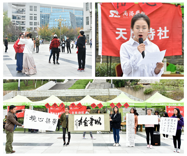 舉行“九九重陽心濃濃社團情”文藝演出。清商漢服學社、書畫協(xié)會、丹江文學社等社團在學校一號教學樓后的玉蘭廣場表演了精彩的文藝節(jié)目,以“文”“舞”結合演繹中國傳統(tǒng)文化的絢爛多彩,為重陽佳節(jié)增彩助興,吸引了眾多師生駐足欣賞?;顒蝇F(xiàn)場,漢服愛好者以靈動曼妙之姿將漢服之美、民族經典演繹的淋漓盡致;天風詩社成員現(xiàn)場解讀詞作《阮郎歸》,聲情并茂、情真意切地展現(xiàn)了中華詩詞的優(yōu)美雅致;書法表演者以行云流水的筆法,與觀眾一同品味書法墨香、傳承經典文化。