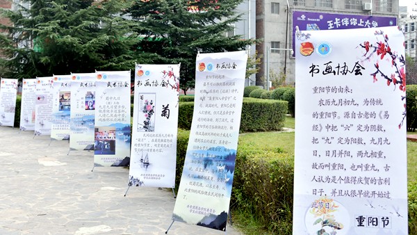 舉辦“禮樂重陽 薪火相傳”傳統(tǒng)文化藝術展。校團委精心制作20多幅海報,于重陽節(jié)當天在一號教學樓前展出,展覽圍繞重陽節(jié)的由來、起源、習俗、相關詩詞等方面,詳細介紹了重陽節(jié)的歷史與文化內涵,激發(fā)了當代大學生對傳統(tǒng)文化的熱情,營造了尊老敬老、歡度重陽佳節(jié)的校園文化氛圍,受到了師生的歡迎。