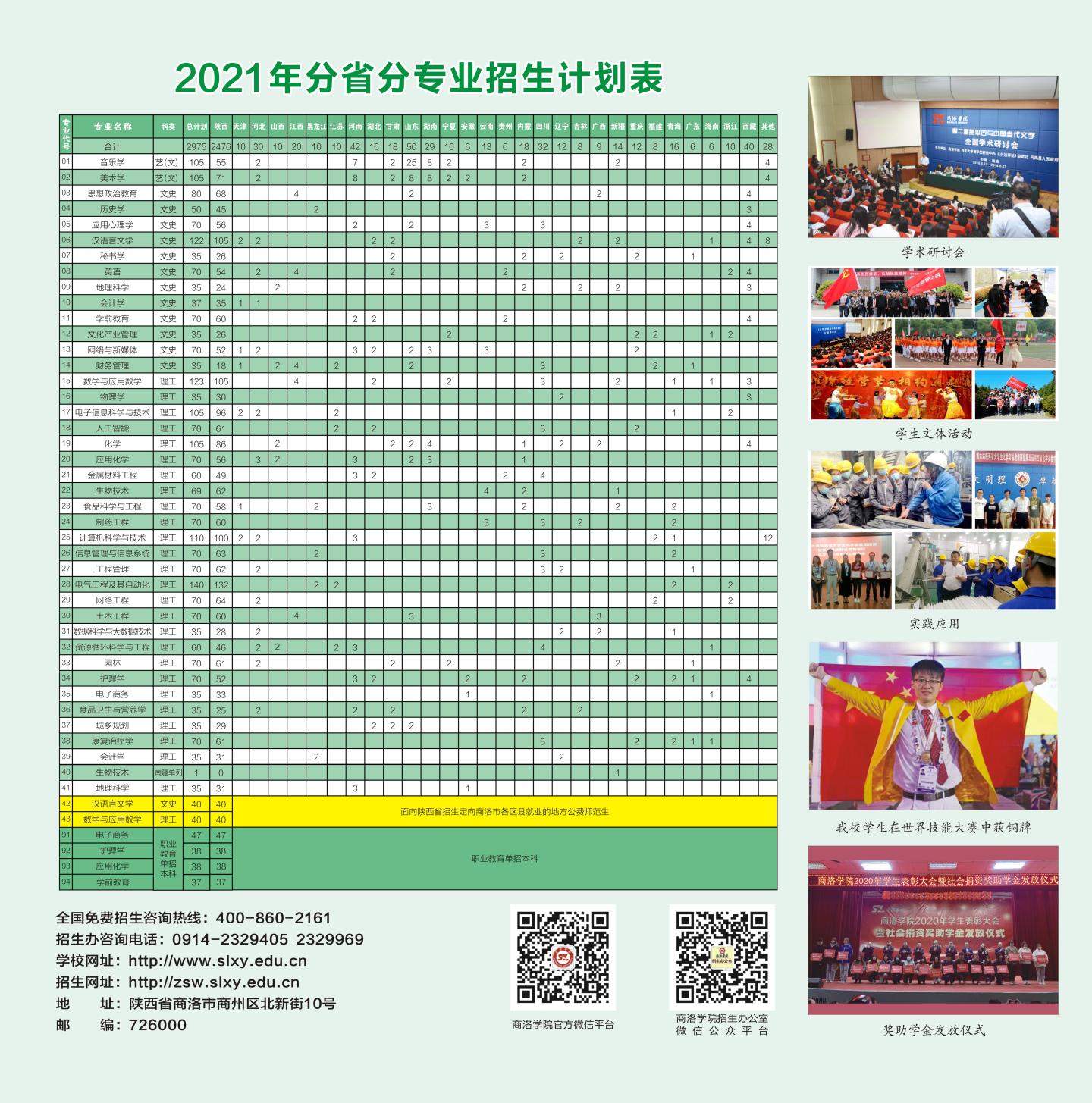 商洛学院2021q招生简?