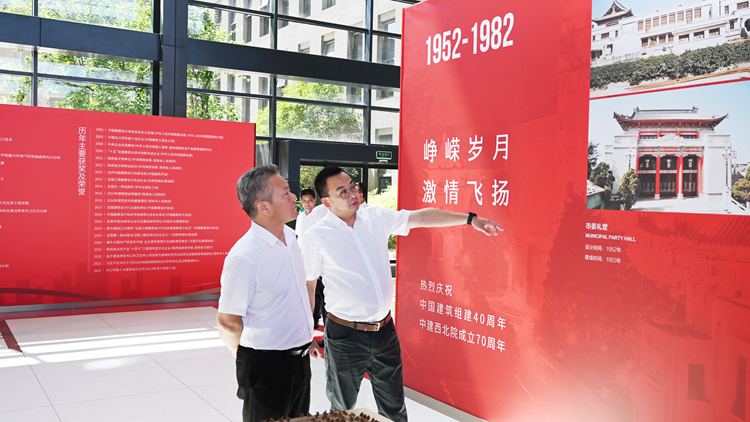 ?x)前Q张志昌、范C(x)、郭瑾一行在中国建筑西北设计研究院有限公司相兌责h的陪同下参观?0周年展厅和绿色能源院?/p>
