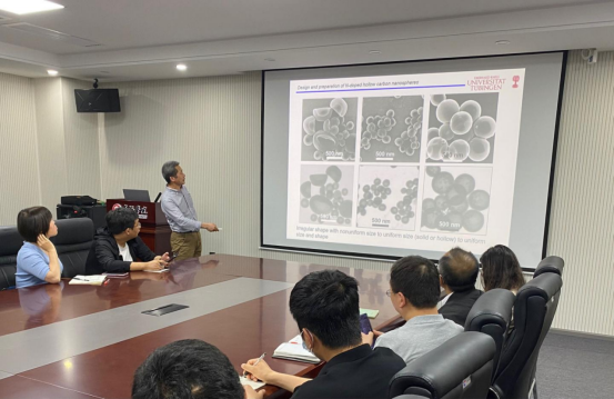 5?9日,我院牚w德国囑֮根大学梁玉仓博士为师生代表做题ؓ《尺寸和形貌可控的单分散氮掺杂的_U米球的制备及电(sh)化学性能研究》的学术报告。学?00余名师生代表聆听了报告。报告会由我院院长周春生教授L?/p>
