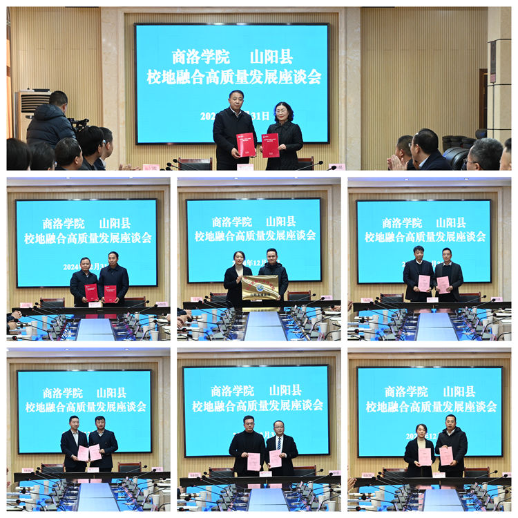 為進(jìn)一步深化政產(chǎn)學(xué)研深度融合、政校企地合作發(fā)展,實(shí)現(xiàn)科學(xué)研究和服務(wù)地方水平持續(xù)快速提升,12月31日,商洛學(xué)院與山陽(yáng)縣共同舉辦校地融合高質(zhì)量發(fā)展簽約儀式。商洛學(xué)院校長(zhǎng)權(quán)雅寧、副校長(zhǎng)王新軍,山陽(yáng)縣縣長(zhǎng)李凌云,副縣長(zhǎng)陳宏波,縣委常委、統(tǒng)戰(zhàn)部部長(zhǎng)樂(lè)席波出席簽約儀式。山陽(yáng)縣縣委常委、組織部部長(zhǎng)伍淑軍主持簽約儀式。