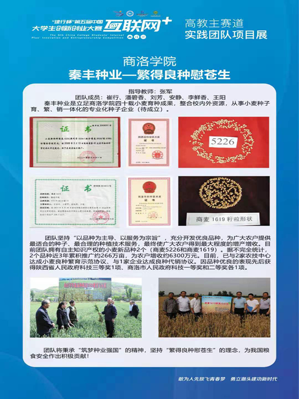 晚上大約十點(diǎn),我們團(tuán)隊(duì)師生接到教務(wù)處蘇鐵柱老師電話:我們的項(xiàng)目——秦豐種業(yè):繁得良種慰蒼生——入圍金獎(jiǎng)了!我們幾人頓時(shí)興奮地像個(gè)孩子一樣跳躍起來。我深深地松了口氣,一年多的努力總算有了結(jié)果。