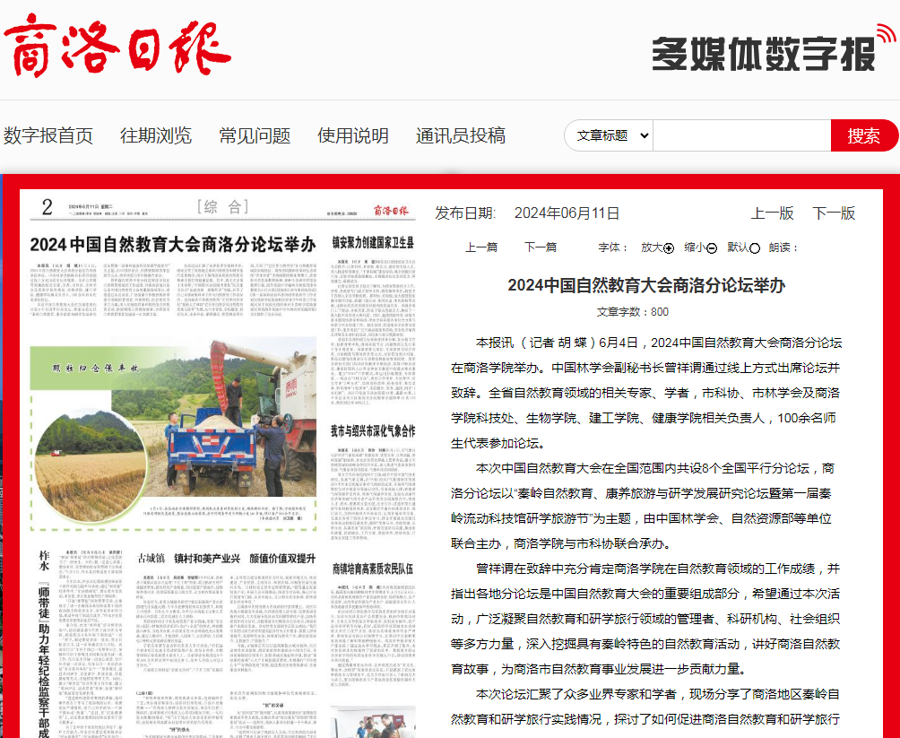 商洛日報:2024中國自然教育大會商洛分論壇舉辦