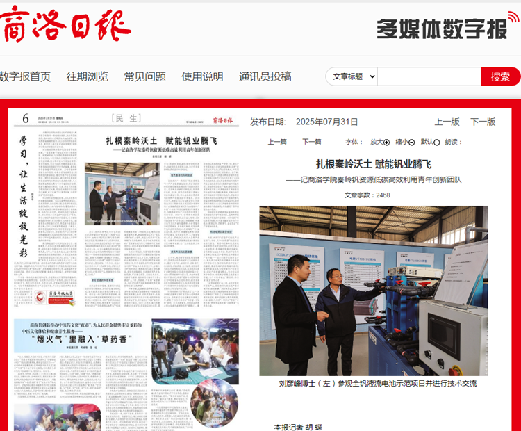 “從實驗室到礦山一線,從論文專利到實體產(chǎn)品,我們始終與商洛釩產(chǎn)業(yè)同頻共振、深度相融?!眲┓灞硎荆搪鍖W院秦嶺釩資源低碳高效利用青年創(chuàng)新團隊將繼續(xù)以“青年之力”深耕秦嶺特色資源開發(fā)利用,用科技創(chuàng)新為釩產(chǎn)業(yè)延鏈、補鏈、強鏈,為商洛“一都四區(qū)”建設、“中國釩都”夢想的實現(xiàn)貢獻“學院智慧”與青春力量。