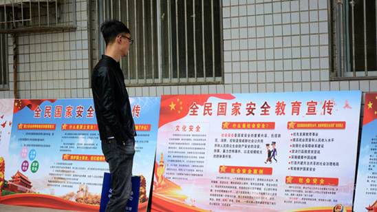 商洛學(xué)院學(xué)生認(rèn)真學(xué)習(xí)展板上的國(guó)家安全知識(shí)