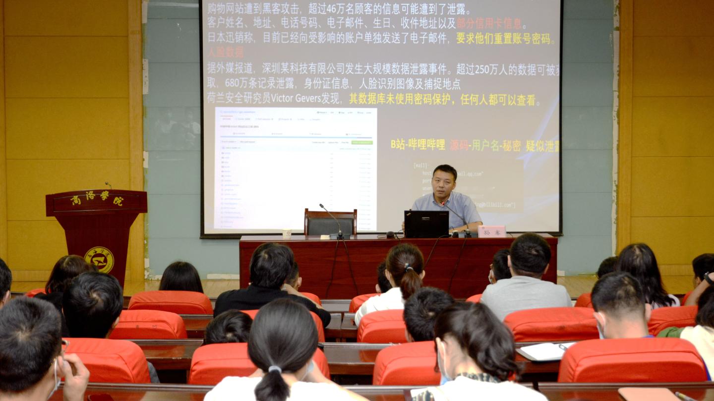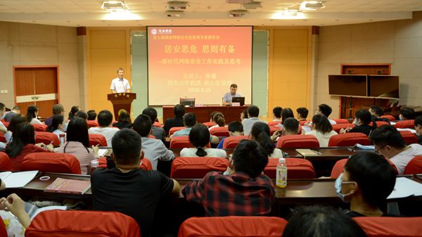 為增強(qiáng)我校師生網(wǎng)絡(luò)安全意識(shí),普及網(wǎng)絡(luò)安全相關(guān)知識(shí),營(yíng)造健康文明的網(wǎng)絡(luò)環(huán)境,根據(jù)學(xué)校第七屆網(wǎng)絡(luò)安全宣傳周活動(dòng)安排,9月15日,我校舉辦網(wǎng)絡(luò)安全知識(shí)專家報(bào)告會(huì),邀請(qǐng)西北大學(xué)孫騫教授來(lái)我校作了題為《居安思危 思則有備——新時(shí)代網(wǎng)絡(luò)安全工作實(shí)踐及思考》專題報(bào)告。我校黨委副書記劉勇主持報(bào)告會(huì),各職能部門、二級(jí)學(xué)院信息化專員、教師代表及學(xué)生代表參加報(bào)告會(huì)。