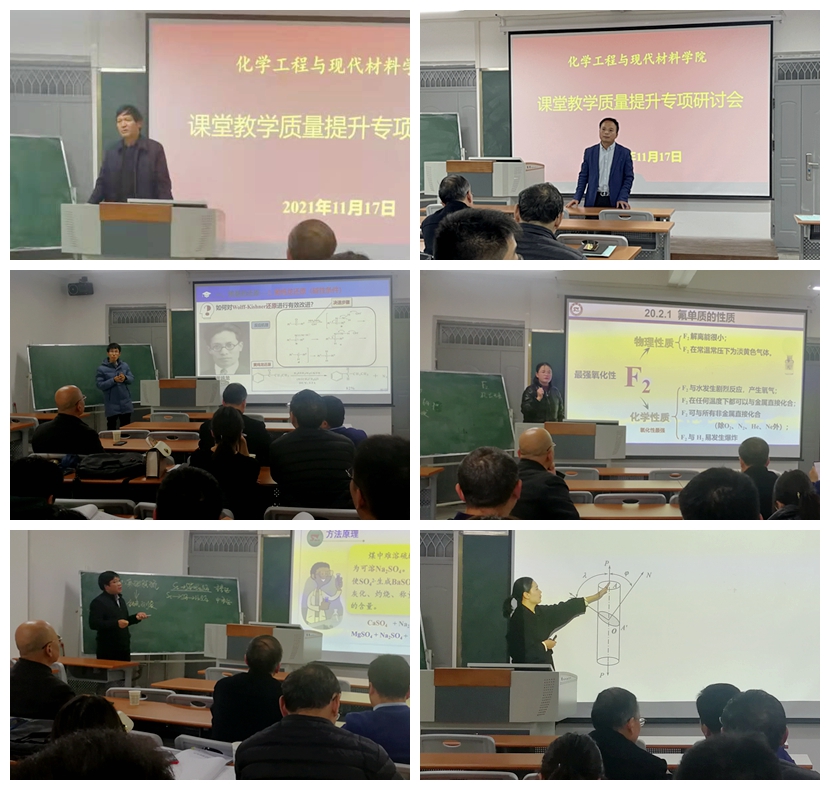 會上,學院課堂創(chuàng)新大賽參賽教師王建芳,青教賽參賽教師李美蘭、孫強強分別進行了《無機及分析化學》《無機化學》、《工業(yè)分析》課程課堂教學展示;課程思政示范項目成員龔偉、韓茜分別進行了《有機化學》《材料科學基礎》課程思政示范展示。