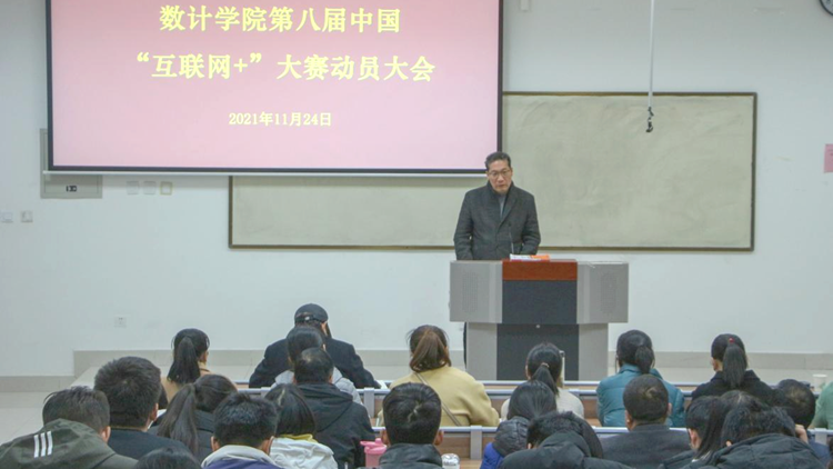 11月24日下午,數(shù)計(jì)學(xué)院舉辦第八屆中國國際“互聯(lián)網(wǎng)+”大學(xué)生創(chuàng)新創(chuàng)業(yè)大賽動員大會,學(xué)院院長李超、副院長王念良、教務(wù)處副處長高擴(kuò)昌,學(xué)院全體無課教師和學(xué)生代表100余人參加了會議。