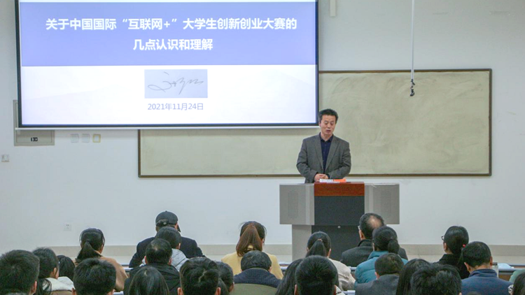 高擴(kuò)昌作了題為《關(guān)于中國國際“互聯(lián)網(wǎng)+”大學(xué)生創(chuàng)新創(chuàng)業(yè)大賽的幾點(diǎn)認(rèn)識和理解》的專題報告,對“互聯(lián)網(wǎng)+”大賽政策、學(xué)科前沿及如何備賽進(jìn)行了詳細(xì)的解讀,介紹了我校歷年參賽情況,分享了自己在組織參與“互聯(lián)網(wǎng)+”大賽過程中的心得體會與寶貴經(jīng)驗(yàn)。