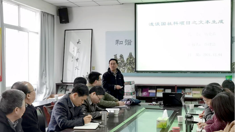 薛璞喆博士以《淺談國社科項(xiàng)目之文本生成》為題,從歷史學(xué)視角,結(jié)合實(shí)際案例,從項(xiàng)目選題、文本書寫和學(xué)術(shù)體悟三個(gè)方面詳細(xì)介紹了項(xiàng)目申報(bào)的思考過程和成功經(jīng)驗(yàn)。他建議,項(xiàng)目研究要堅(jiān)持問題導(dǎo)向,申報(bào)文本的書寫要“以問題帶動(dòng)內(nèi)容,以內(nèi)容深化問題”,在論述中不斷細(xì)化問題,強(qiáng)化選題主旨,強(qiáng)調(diào)選題意義;要扎實(shí)學(xué)術(shù)基礎(chǔ),自覺提升學(xué)術(shù)素養(yǎng)和創(chuàng)新能力;要增強(qiáng)團(tuán)隊(duì)意識(shí),堅(jiān)持虛心涵味、切己體察,在互動(dòng)交流中學(xué)習(xí)先進(jìn)經(jīng)驗(yàn)、汲取智慧力量。