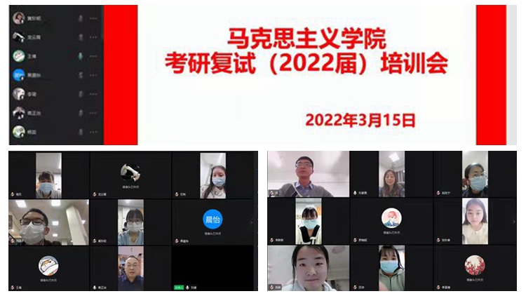 為助力我院考研學(xué)子科學(xué)高效準(zhǔn)備復(fù)試工作,讓考研學(xué)子心中有底氣,臉上精氣。3月15日晚,馬克思主義學(xué)院召開線上考研復(fù)試培訓(xùn)會(huì),為即將參加考研復(fù)試學(xué)生提供全方位、多角度指導(dǎo)。馬克思主義學(xué)院院長蔣正治、黨總支書記劉麥霞、副院長武永耿、學(xué)工辦主任李燕燕,青年教師劉健、王倩、葉肖,2021屆畢業(yè)生(現(xiàn)就讀于蘭州理工大學(xué))王宇杰和本次上線的23名學(xué)生參加了會(huì)議。會(huì)議由武永耿主持。