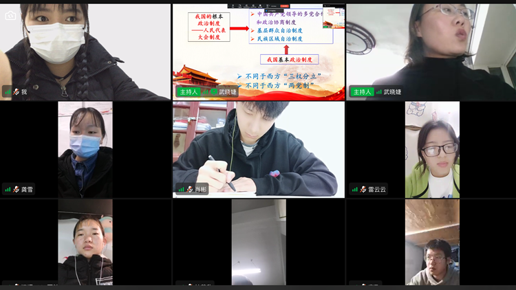 3月21日晚,校團(tuán)委組織召開線上“青馬班”兩會(huì)精神學(xué)習(xí)交流會(huì),馬克思主義學(xué)院教師武曉婕受邀為與會(huì)同學(xué)和老師解讀兩會(huì)精神。校團(tuán)委相關(guān)負(fù)責(zé)老師,“青馬班”全體學(xué)員參加了學(xué)習(xí)交流。