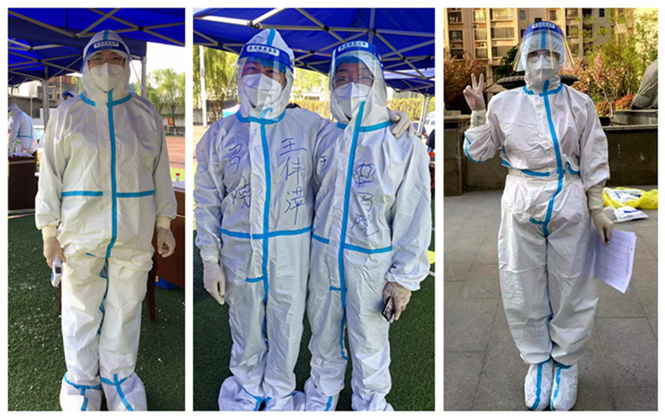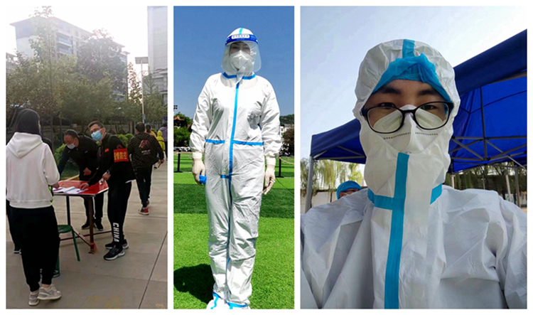 ——廣大教師響應(yīng)號召,積極參與志愿服務(wù)。4月8日首場全員核酸檢測拉開序幕,工作人員緊缺,馬克思主義學(xué)院教師安梅、王偉萍、王貝貝主動(dòng)請纓,穿上防護(hù)服,變身“大白”,在炎炎烈日下協(xié)助醫(yī)護(hù)人員完成檢測任務(wù)。4月11日,組織部發(fā)出《致全校各級黨組織和廣大共產(chǎn)黨員的倡議書》后,馬克思主義學(xué)院教師黨員積極響應(yīng),踴躍報(bào)名。劉健、葉肖、鞏麗麗、王貝貝、王偉萍等同志參與了校內(nèi)志愿服務(wù),高婷婷、宋秀方等同志積極擔(dān)任了所在小區(qū)志愿者。他們起早貪黑,頂著烈日、冒著風(fēng)雨為疫情防控做出積極貢獻(xiàn)。還有肖歲利等非黨員教師也積極向組織表達(dá)了參加志愿服務(wù)的強(qiáng)烈愿望。