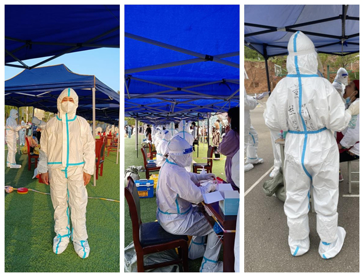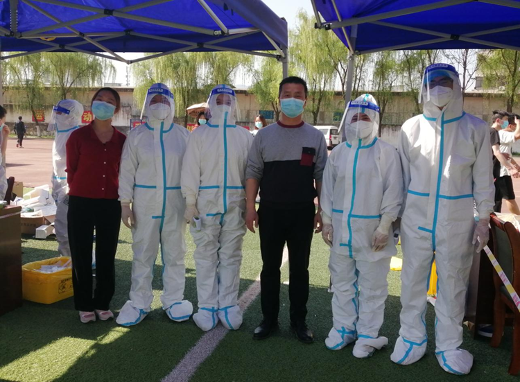 做好志愿服務,發(fā)揮先鋒作用。在學校大操場,鄧淑紅、楊鵬飛、李娜娜等教師身穿防護服,克服酷暑,連續(xù)參與全校學生核酸檢測任務;在學校小操場,黃荊晶、周方舟、丁燕琳等教師引導廣大教職工有序排隊、信息錄入、掃碼測溫;南院家屬區(qū),郭磊磊老師指導幫助退休教職工和年長家屬掃碼、填報相關個人信息;青年教師公寓檢測區(qū)采樣點,王程老師協(xié)助采樣工作人員開展測溫、清理工作臺、現(xiàn)場消殺。