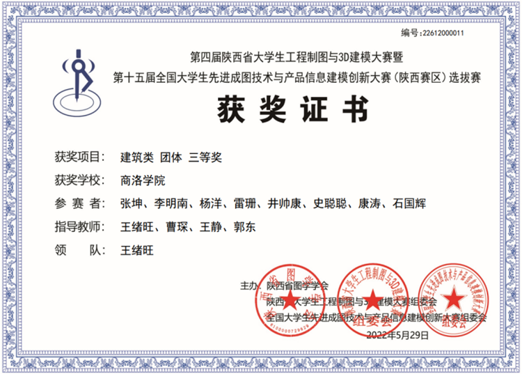 在不久前結(jié)束的第四屆陜西省大學(xué)生工程制圖與3D建模大賽暨第十五屆全國大學(xué)生先進(jìn)成圖技術(shù)與產(chǎn)品信息建模創(chuàng)新大賽(陜西賽區(qū))上,我校城鄉(xiāng)規(guī)劃與建筑工程學(xué)院派出15名參賽選手組成的團(tuán)隊,與省內(nèi)57支隊伍的730余名選手進(jìn)行了激烈角逐,取得單項一等獎1項、二等獎2項、三等獎7項,并榮獲建筑團(tuán)體三等獎。這是建工學(xué)院師生參加該項比賽以來獲得的最好成績。