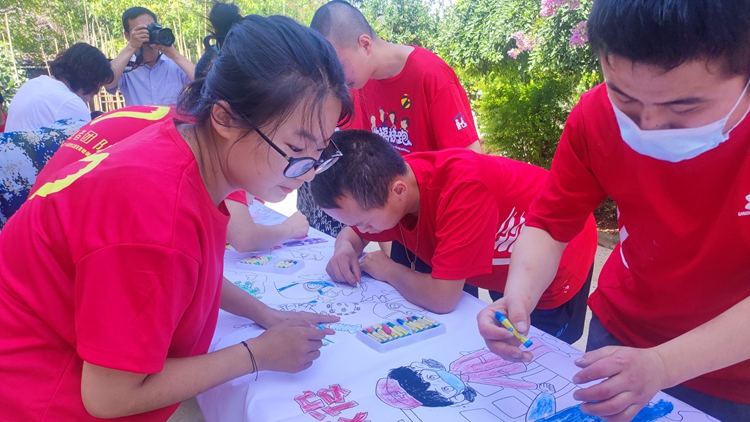 7月21日,我校大學(xué)生志愿者走進(jìn)商洛慧靈農(nóng)場托養(yǎng)中心開展暑期文化科技衛(wèi)生“三下鄉(xiāng)”社會(huì)實(shí)踐活動(dòng)項(xiàng)目“鄉(xiāng)村愛心畫圃”。校團(tuán)委書記王攀以及藝術(shù)學(xué)院師生代表參加了此次活動(dòng)。