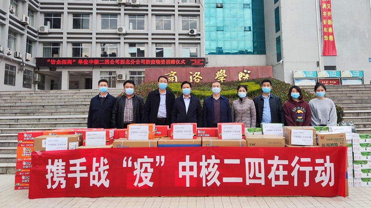 10月20日,建工學(xué)院“訪企拓崗”專項(xiàng)行動(dòng)聯(lián)系單位中國(guó)核工業(yè)二四建設(shè)有限公司西北分公司為支持我校疫情防控工作,向我校捐贈(zèng)了一批酒精、洗手液、口罩等防疫物資。校黨委辦公室·院長(zhǎng)辦公室、學(xué)生處、后勤保障處、建工學(xué)院等部門(mén)相關(guān)負(fù)責(zé)人參加捐贈(zèng)儀式。
