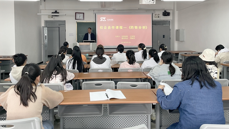 5月13日下午,由生物學(xué)院和陜西盤龍藥業(yè)集團(tuán)股份有限公司共同開發(fā)的校企合作課程建設(shè)活動(dòng)在丹江校區(qū)5號(hào)教學(xué)樓開展。此項(xiàng)校企合作課程《藥物分析》是制藥工程專業(yè)必修課,校內(nèi)主講教師為生物學(xué)院王學(xué)軍教授,校外主講人為盤龍藥業(yè)藥研院的資深專家周緒華。學(xué)院制藥工程專業(yè)師生代表參加活動(dòng)。