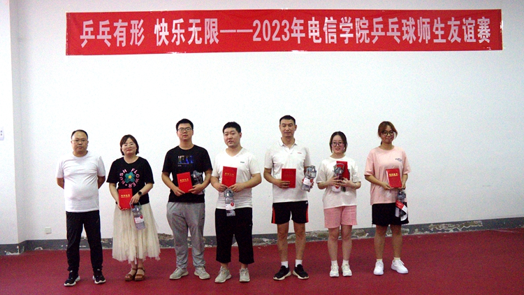 為持續(xù)深化“五育并舉”實(shí)踐,落實(shí)“三全育人”理念,加強(qiáng)師生交流,6月9日,電信學(xué)院在丹江校區(qū)舉辦首屆“乒乓有形 快樂無限”師生乒乓球聯(lián)誼賽。學(xué)院教職工代表,物理系、電子信息科學(xué)系、電氣工程和人工智能系學(xué)生代表共70余名師生參加了比賽。