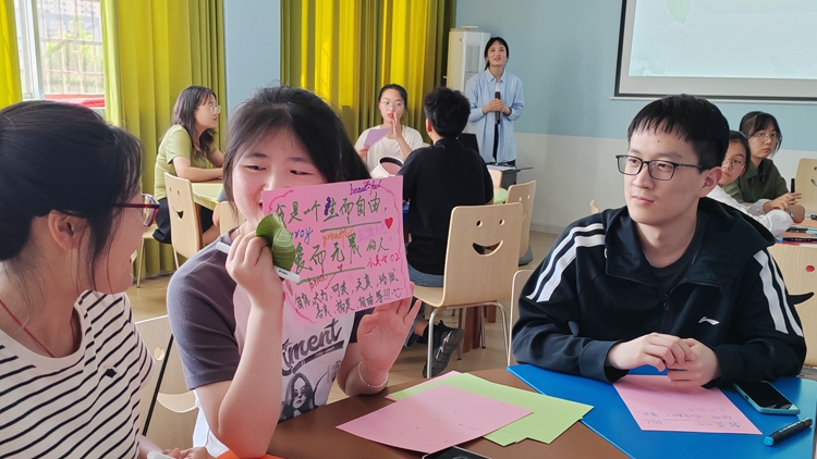 “向陽花”大學生危機預控工作室項目負責人、生物學院輔導員張俊華帶領的“贊出高情商”團輔活動,通過“動物大集合”“相見歡,滾雪球”“贊美三段論”“正向八卦”“贊美卡片分享和制作”等環(huán)節(jié),讓同學們感受到贊美的意義和力量、善于發(fā)現(xiàn)個人平時忽略掉的閃光點,在增強學生自信心的同時學會高情商地贊美他人,從而增進人際交往能力。