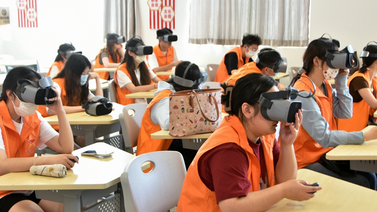 6月13日,青馬班學員在馬克思主義學院思想政治教育虛擬仿真實驗室通過VR眼鏡直觀生動地體驗了《跟著習近平總書記去奮斗》和《抗日戰(zhàn)爭紀念館》兩個場景,充分感受到抗日戰(zhàn)爭偉大勝利的革命性意義以及在習近平總書記的引領下中國發(fā)展取得的歷史性成就。