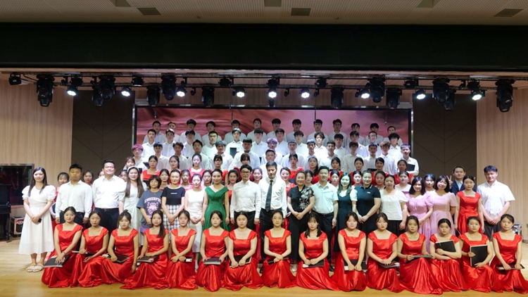 本次合唱音樂會由藝術(shù)學(xué)院院長李世鵬導(dǎo)賞、副院長劉志華指揮,藝術(shù)學(xué)院“春之聲”合唱團演唱,教師劉志華、易伶、李曉龍獨唱和領(lǐng)唱,教師毛奕丹伴奏,學(xué)生張道路、黃柏楊朗誦。整場音樂會共九首作品,其中包括《黃河大合唱》的八個樂章(《黃河船夫曲》《黃河頌》《黃河之水天上來》《黃水謠》《河邊對口曲》《黃河怨》《保衛(wèi)黃河》《怒吼吧黃河》)和合唱作品《如愿》。音樂會的精彩演出贏得陣陣掌聲,現(xiàn)場氣氛熱烈,受到高度贊揚。