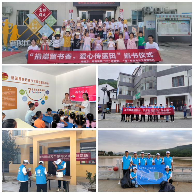 真心為民辦實事振興路上顯擔(dān)當(dāng)。實踐隊積極對接藍(lán)田縣團(tuán)委,開展系列宣講及主題實踐活動。一是在藍(lán)關(guān)街道向陽路社區(qū)、三官廟鎮(zhèn)移民社區(qū)開展捐書贈書活動,現(xiàn)場捐書一百余本;二是開展“讀紅色故事,學(xué)紅色精神”主題教育宣講活動;三是與當(dāng)?shù)厍嗌倌暌黄?,開展環(huán)保人人有責(zé),共護(hù)灞河水活動。系列活動的開展,充分彰顯了電信青年學(xué)子助力鄉(xiāng)村振興的責(zé)任與擔(dān)當(dāng)。