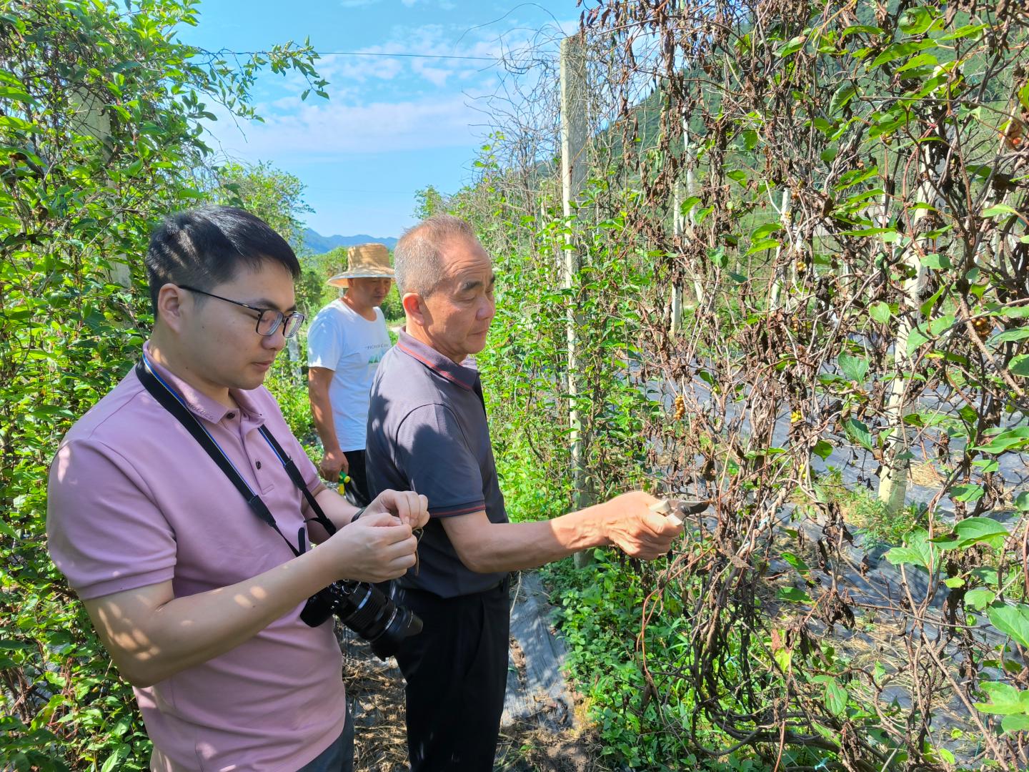為持續(xù)深化產(chǎn)教融合,充分發(fā)揮高校學(xué)科和專業(yè)優(yōu)勢,提升根植地方行動工作實效,8月26日,數(shù)計學(xué)院智慧農(nóng)業(yè)根植地方服務(wù)團(tuán)隊負(fù)責(zé)人劉愛軍,生物學(xué)院商洛市中藥材病蟲害綜合防治技術(shù)研究中心博士王洋、孟銀鳳深入根植地方合作單位——洛南煜正中藥材專業(yè)合作社千畝五味子種植基地,開展根植地方調(diào)研及科技服務(wù)活動,并與基地相關(guān)人員進(jìn)行了交流。